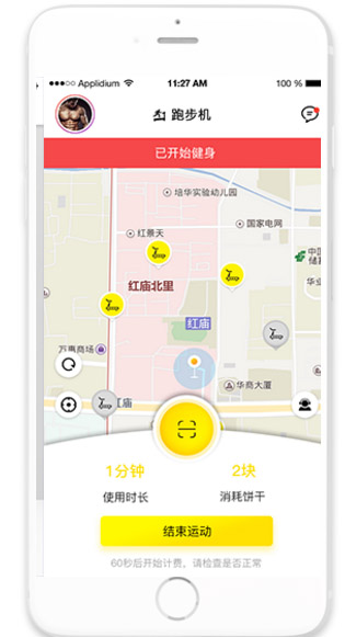 4,運動結(jié)束后,點擊APP上付費結(jié)賬。