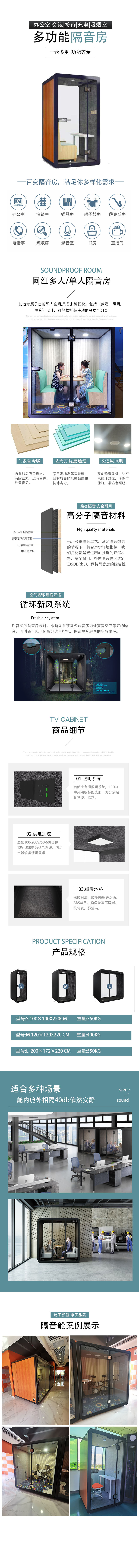 直播間隔音房是一款有著隔音降噪功能的移動(dòng)玻璃間,在隔音房內(nèi)進(jìn)行吸音處理以及針對(duì)外部的隔音處理,阻隔內(nèi)部聲音可達(dá)30-40分貝,阻隔外音可達(dá)15-20分貝,目的主要是為了不讓隔音房外的人聽到里面的聲音,大幅度降低隔音房外部噪音對(duì)房?jī)?nèi)的影響 隔音間類似一個(gè)大的隔音罩,立體面采用鋼化玻璃,吸音板 吸音棉和隔音板等材料,此隔音的方式使室內(nèi)達(dá)到低噪音環(huán)境。