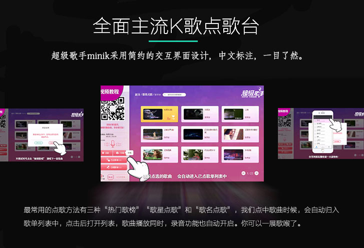 老少皆宜的觸屏式操作點歌界面、歌星、分類等點歌方式一觸即達(dá)帶來非凡的視覺易用體驗。